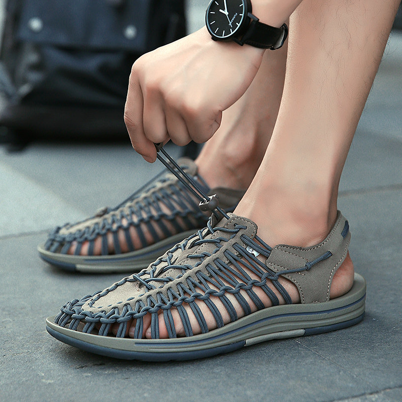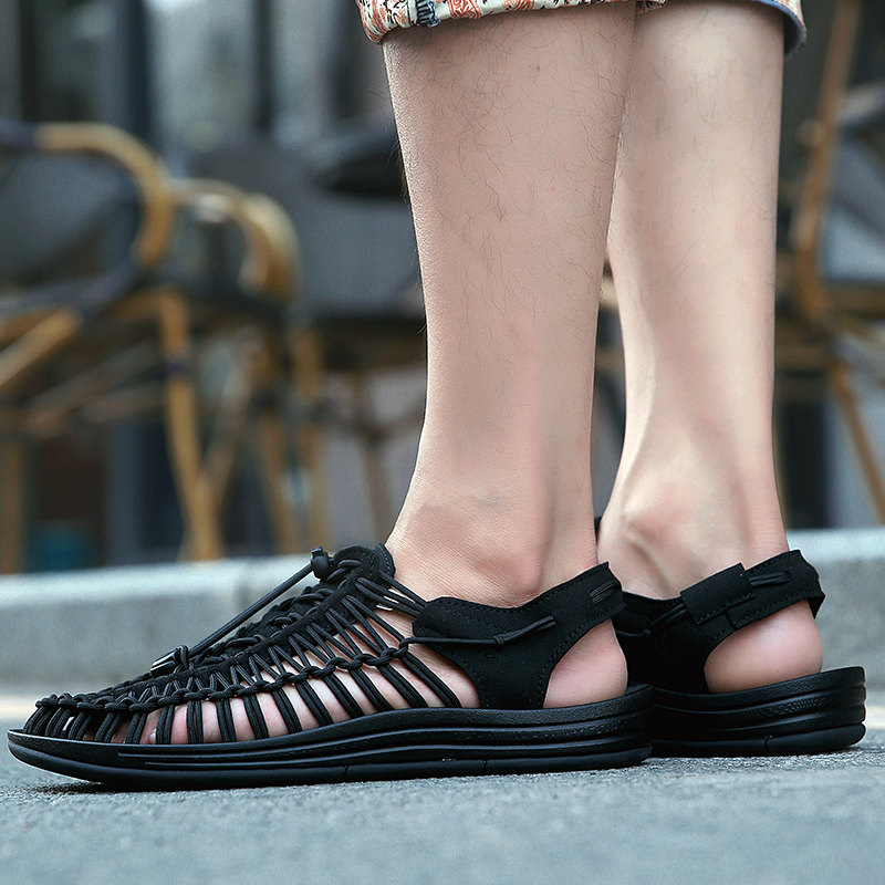 2022 summer new hand-woven men's sandals large size 45 trendy slippers Roman casual beach shoes 46