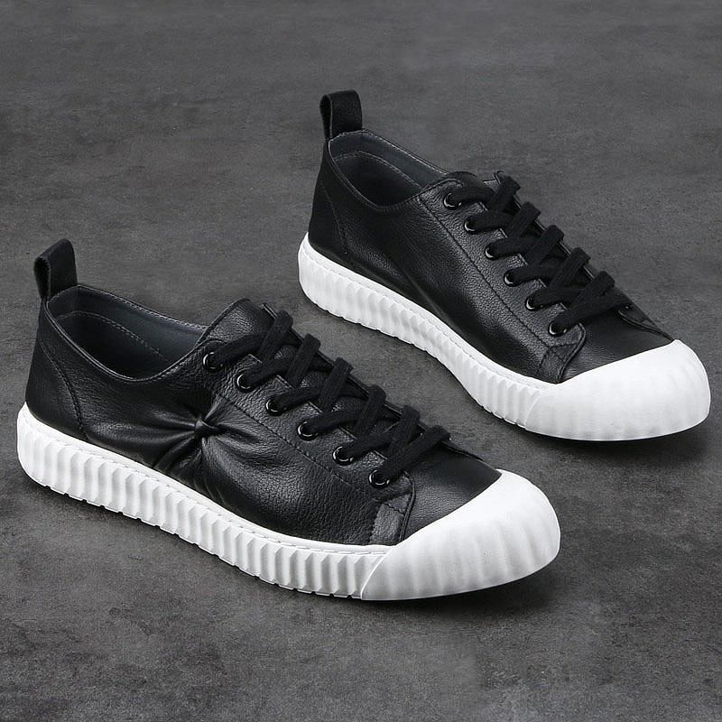 European station new lace-up all-match small white shoes men's leather British round toe Korean style trendy casual low-cut men's single shoes