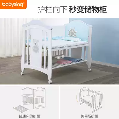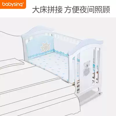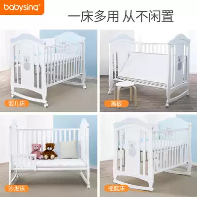 French Babysing Baby multifunctional splicable baby game bed with roller solid wood children's cartoon bed