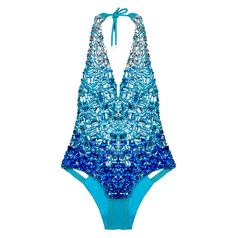OceanMystery 3rd Anniversary Celebration Hand-stitched One-Piece Swimsuit Feminine Rhinestone Holiday Swimsuit