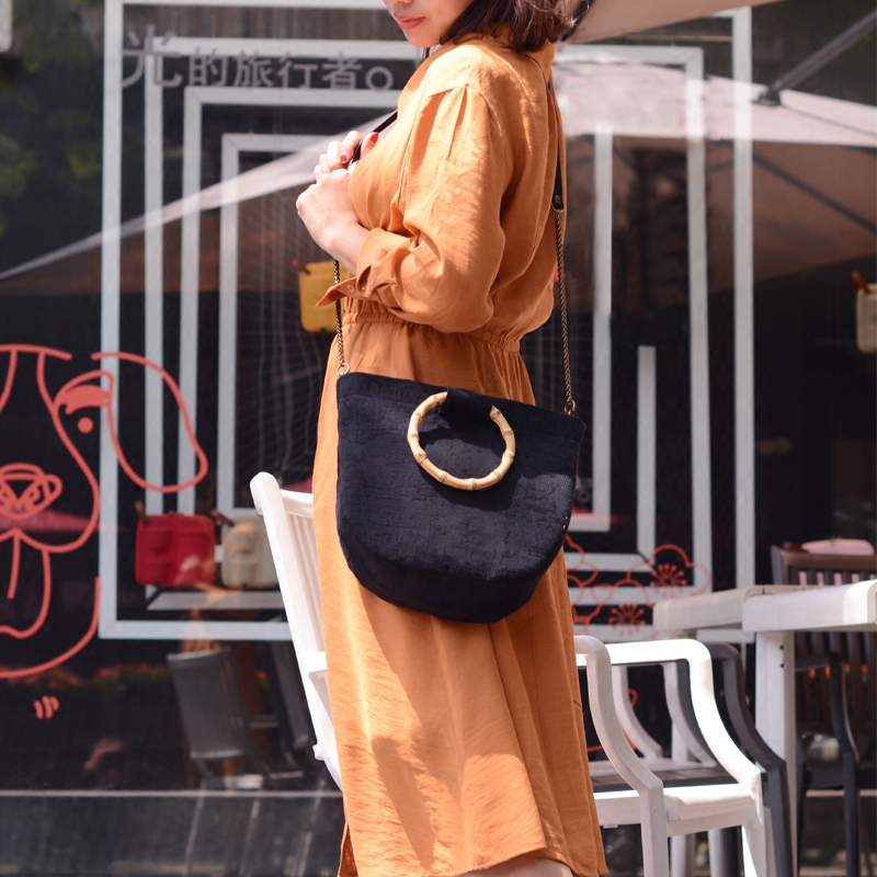 Original custom retro cotton and linen bag casual ladies one-shoulder hand-held bamboo bag solid color literary women's bag all-match