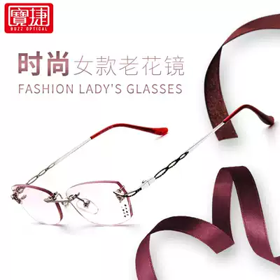 Baojie presbyes women fashion presbyes glasses women frameless aging glasses elegant diamond trimming comfortable HD