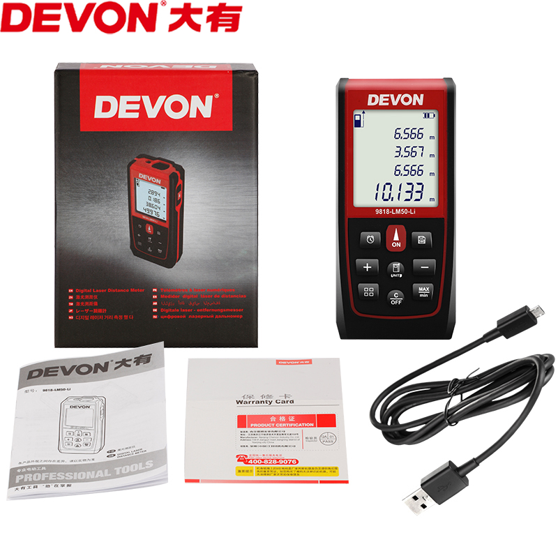 DEVON Large 50m Laser Handheld Rangefinder LITHIUM Rechargeable Infrared Measuring Instrument 9818-LM-50-LI