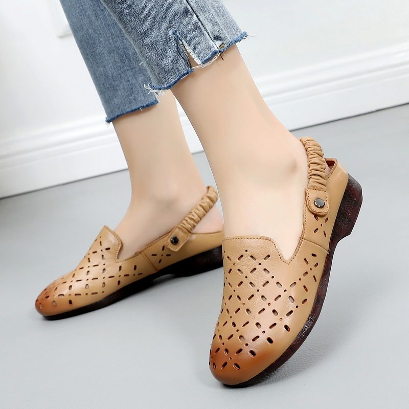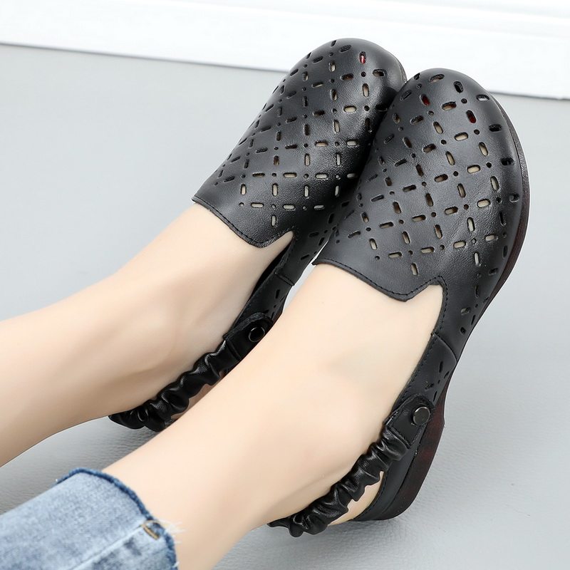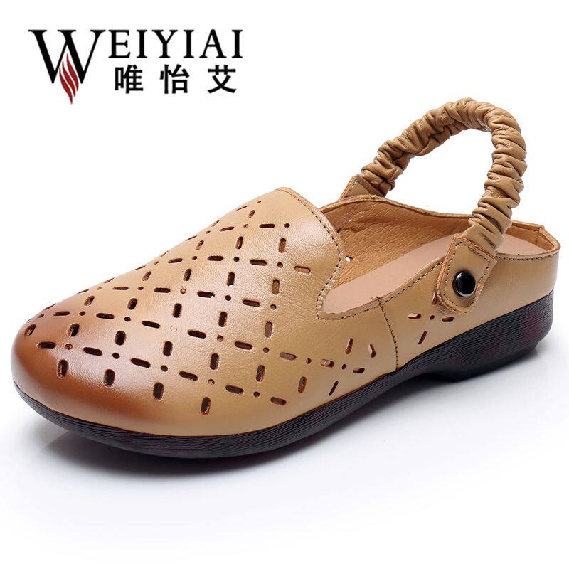 Wearing slippers women's summer fashion Korean version all-match leather large size flat heel sandals 41-43 Baotou hollow women's sandals