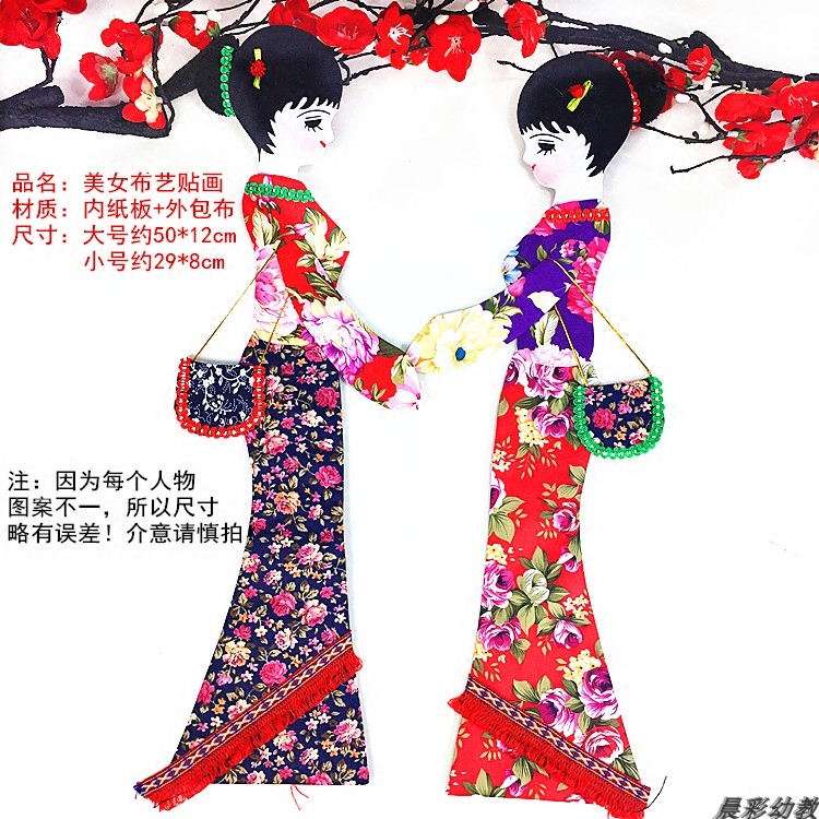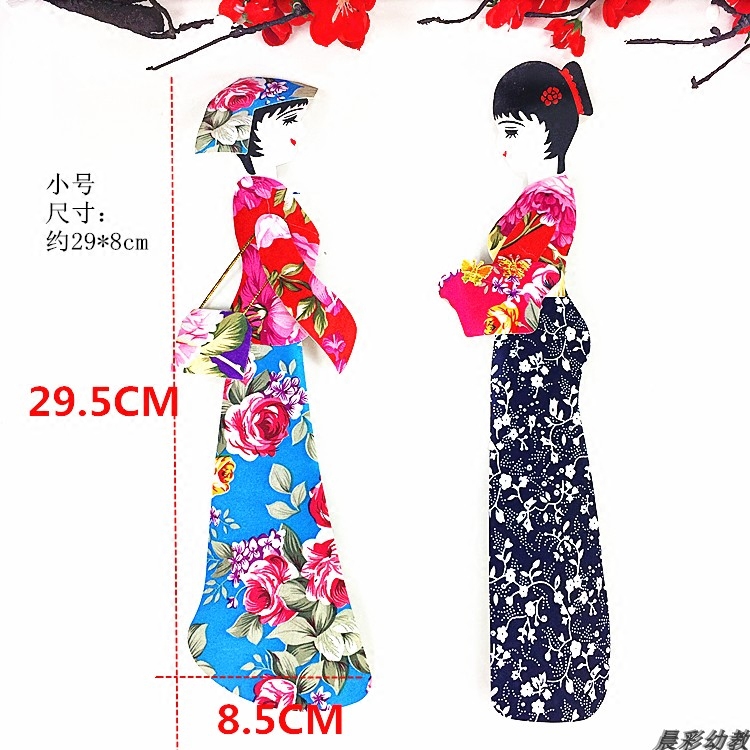 Kindergarten wall decoration Characteristic craft figure painting Minority girl paper-cut handmade fabric wall sticker