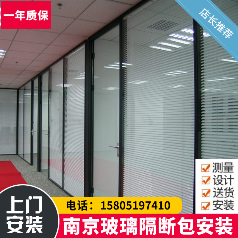 Nanjing office tempered glass partition Double glass louver glass partition wall Single glass frosted glass partition package installation