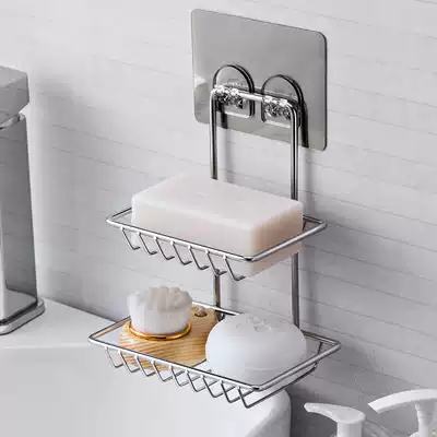 Powder room punch-free fat box rack drain wall-mounted double-layer incense box Stainless steel incense box Creative fat box bathroom