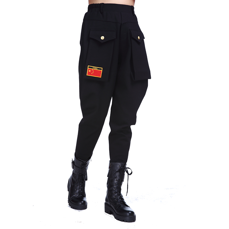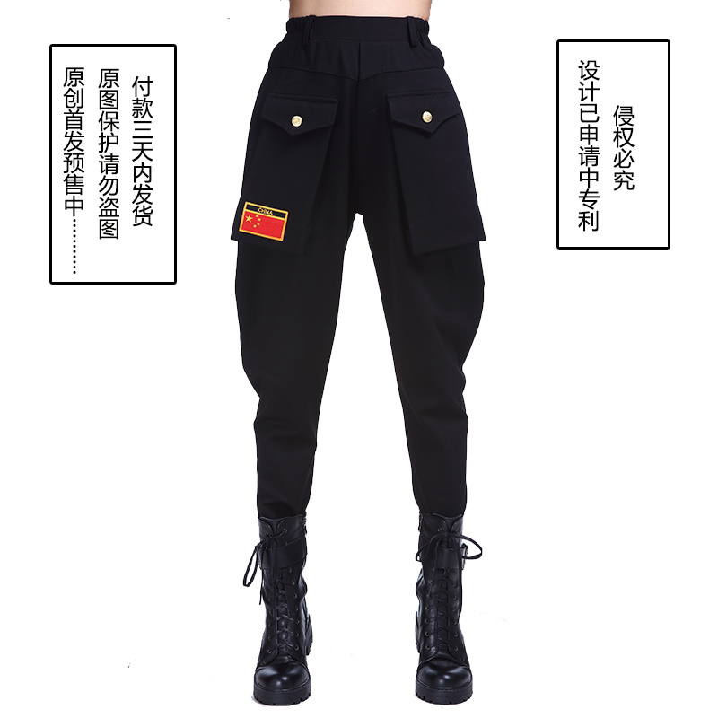 Autumn Winter New Water Soldier Dance Pants Double Row Buckle Loose Kharen Pants Square Dance Performance Lady Long Pants Military Green
