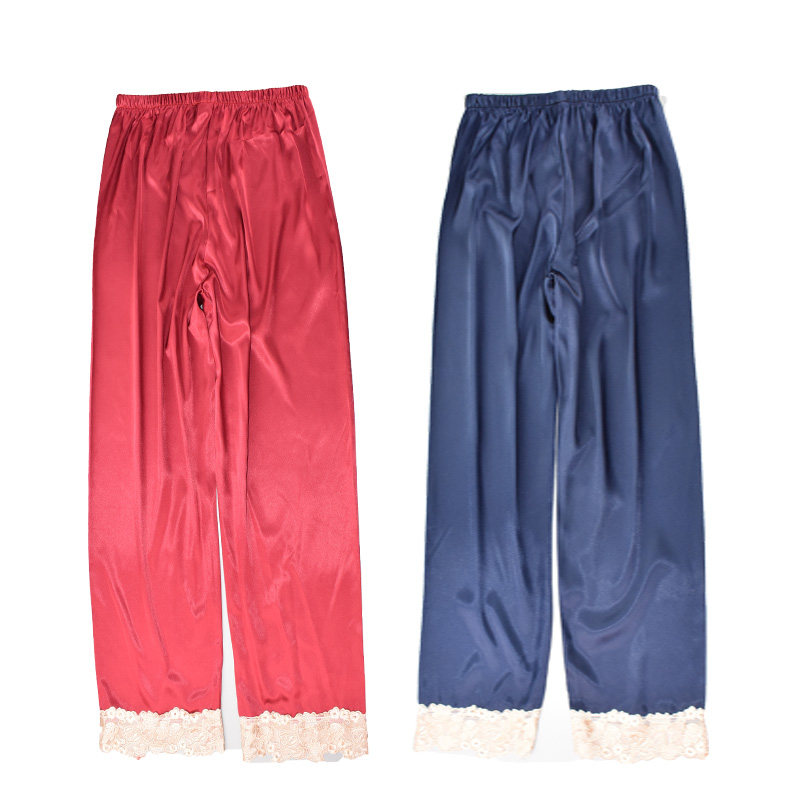 Pajama pants women's spring, summer and autumn trousers simulation silk thin spring and summer air-conditioning pants lace mosquito-proof pants silk home pants women