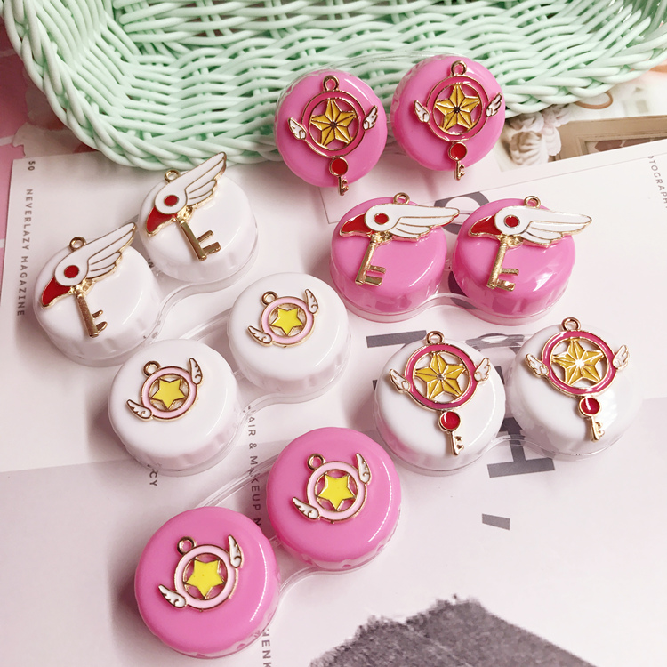 Myopia Contact Lens Companion Box Sakura Girl Two-dimensional Cute Color Contact Lenses Double Box Leak-Proof Portable Care Box