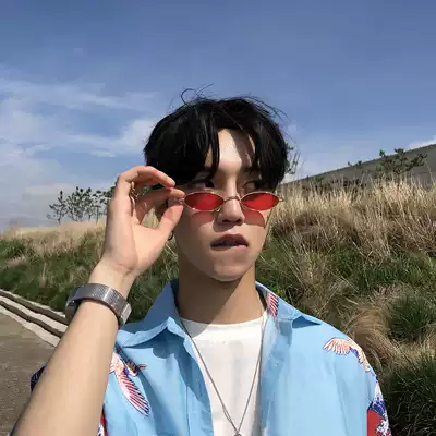 Net Red Seal sail with oval small frame red sunglasses female tide retro hip hop personality small face sunglasses man