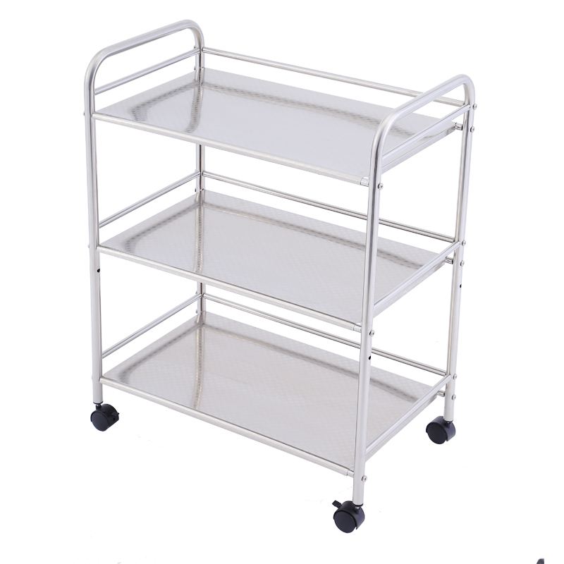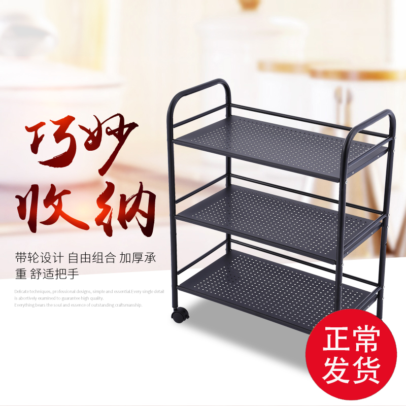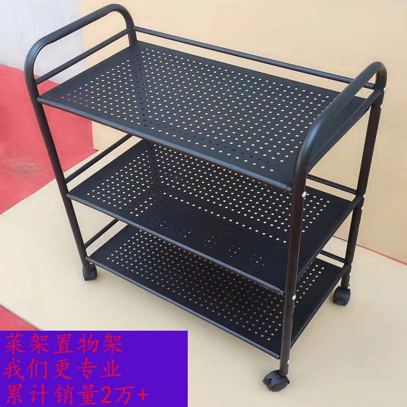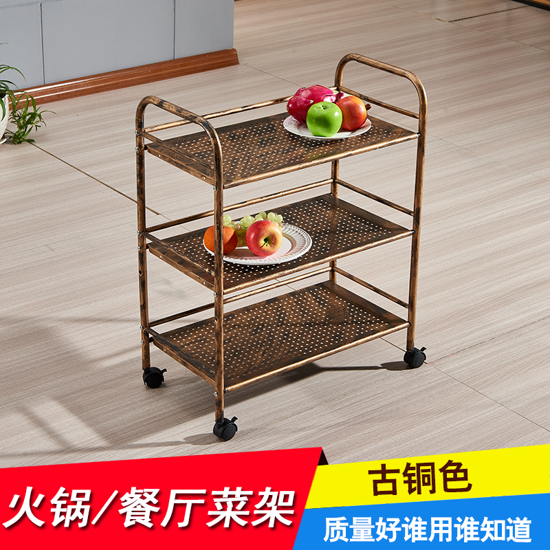 Fire Pan Shop Dish Rack Kitchen Shelving Stainless Steel storage floor Ground Baking Varnish Grid Three Layers of Vegetable Shelf With Wheels