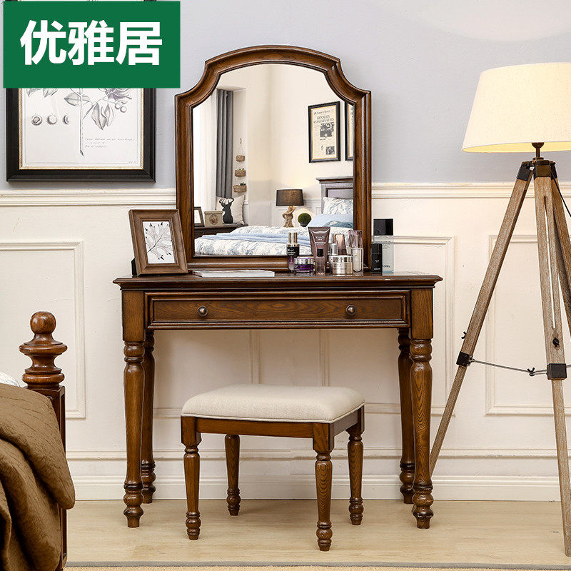 American solid wood dressing table European dressing table small apartment bedroom dressing table combination with mirror drawer stool country