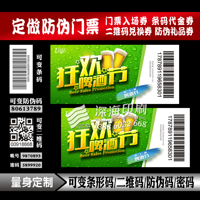 Variable barcode card printing Random QR code Park Park Park Scenic Area Ticket for Swimming Ski Ticket