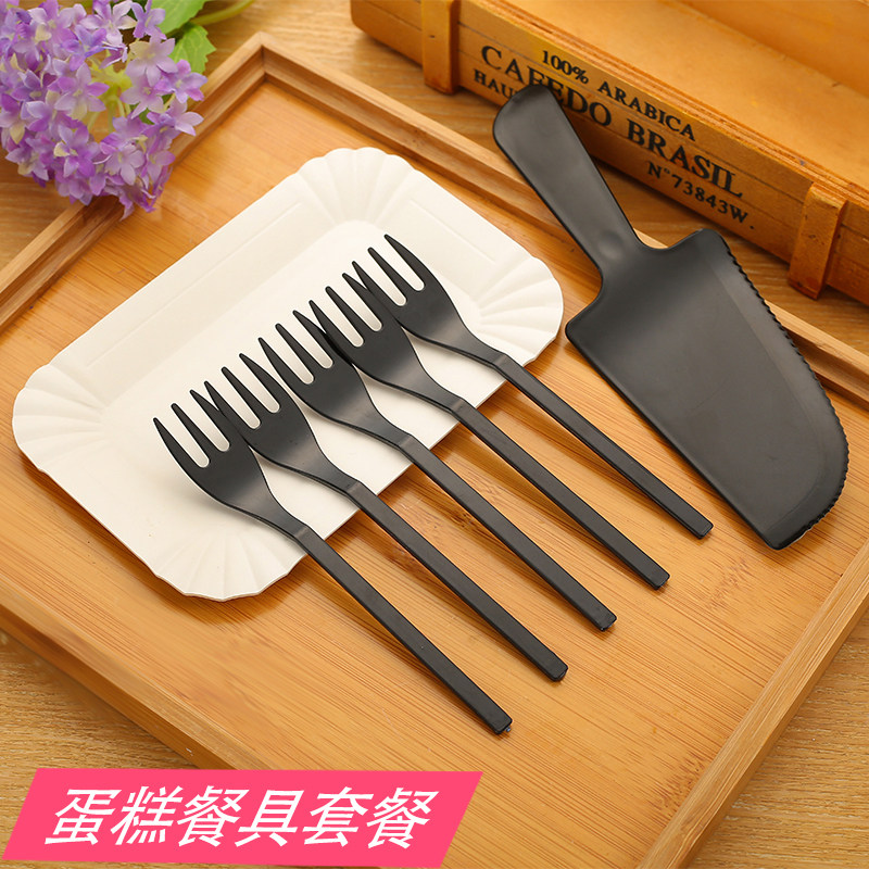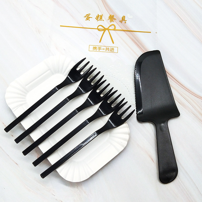 Three-in-one Cake Cutlery Sets Plastic Disposable Cake Knife Fork Tray Suit Birthday Cake fork Dish Combination