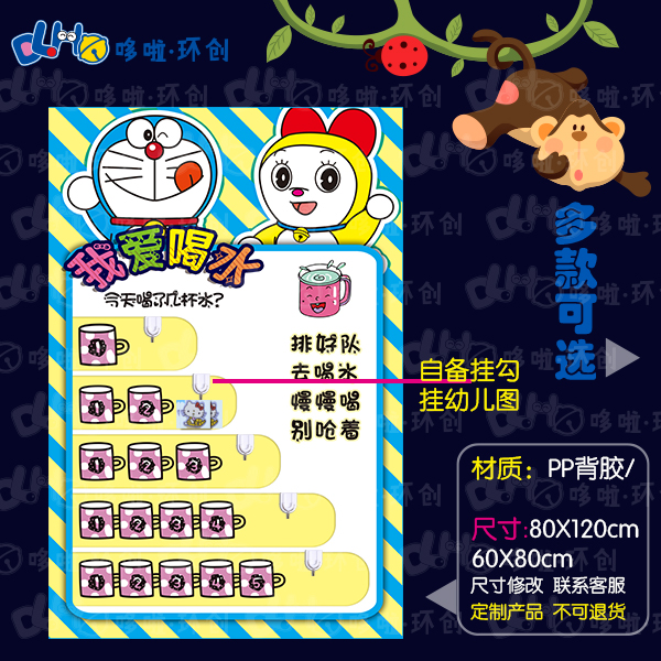 Kindergarten machine cat Doraemon A dream themed propaganda column I love drinking water tips to drink water to record petrol station decorations
