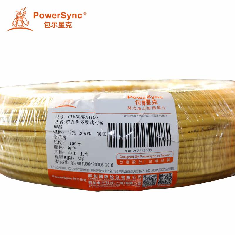 Baoer Xingke (PowerSync) CAT5E twisted-pair 100M full roll category 5 network cable green blue yellow red white 100 meters
