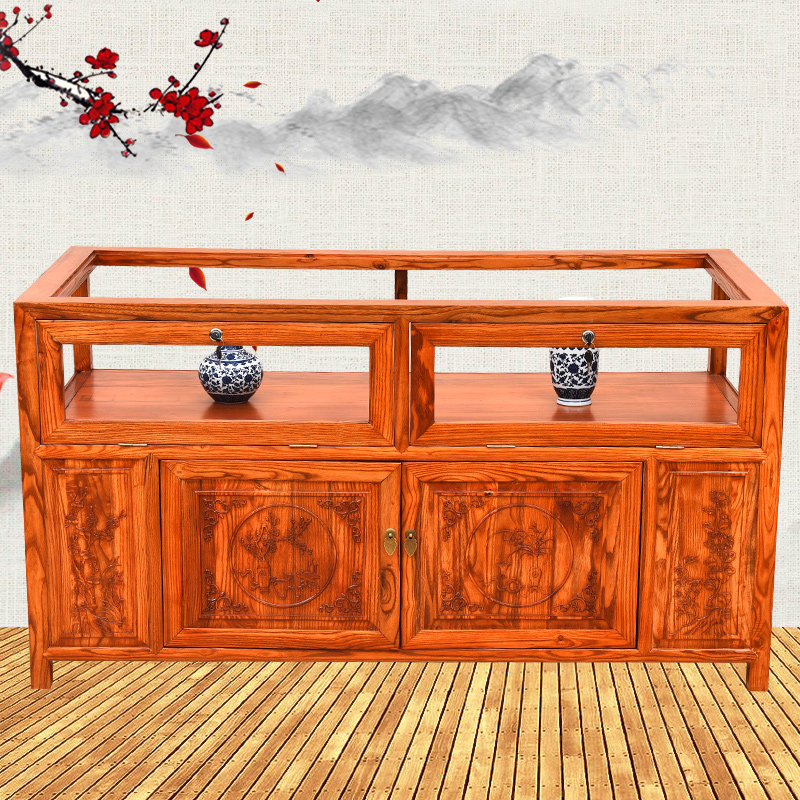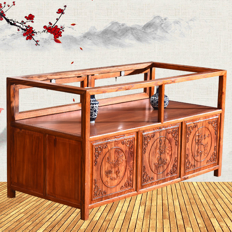 Solid wood jewelry display cabinet Elm Chinese style antique tea leaves ancient play jade jewelry counter display cabinet combination