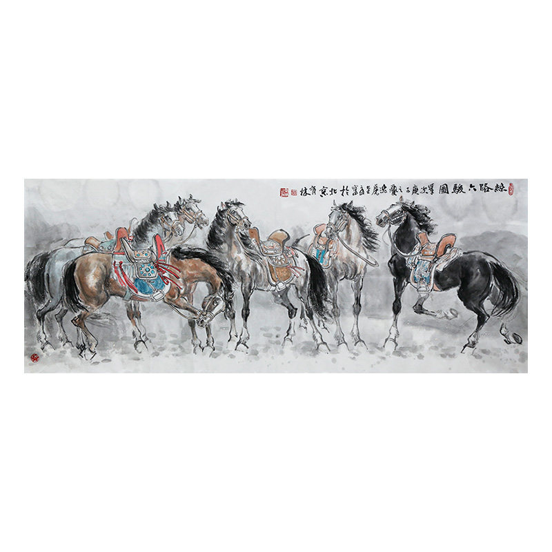 Shi Qi's disciple Shi Yulin "Six Juns of the Silk Road" Chinese Painting Beast Horse decoration Auction Mo Huazhai 3844