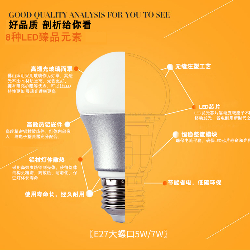 Foshan lighting led bulb e27 Luokou official flagship household ultra-bright lighting table lamp 7W9W 5W small bulb
