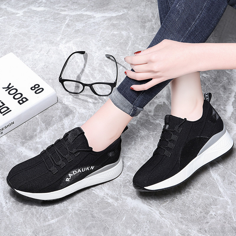 Sneakers plus suede black running shoes 100 hitch a light autumn winter 2021 new leisure tours heightening women's shoes