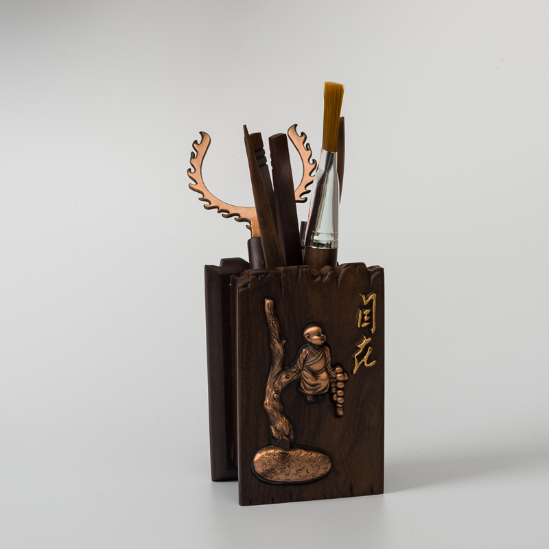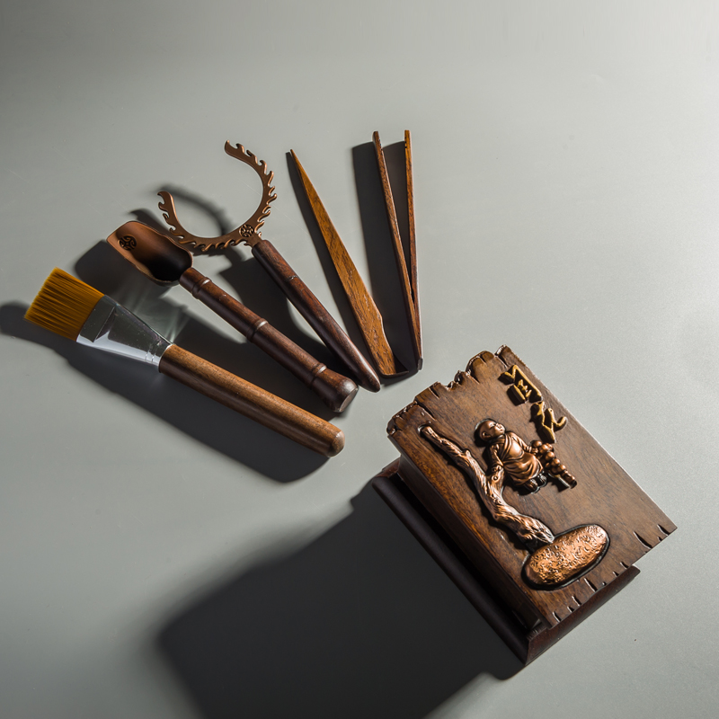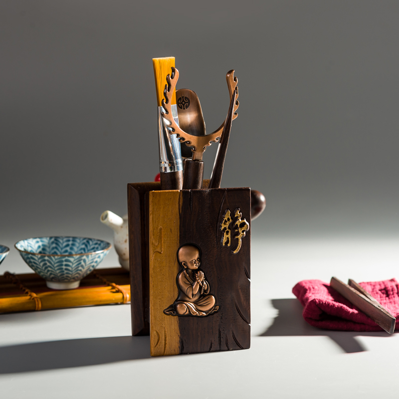 Grass and wood tea Ceremony Six Junzi Ebony solid wood tea clip Tea spoon Tea needle Cup fork Log copper tea bucket Tea ceremony accessories