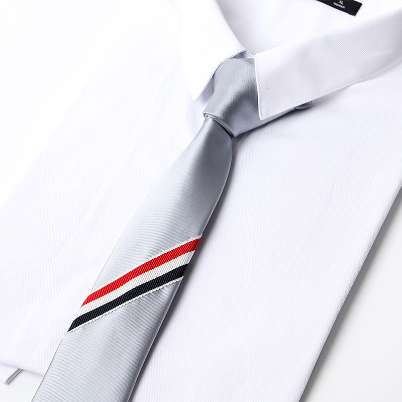 6CM narrow version Korean version British students dress college wind three bars free to play easy to pull zipper lazy tie male