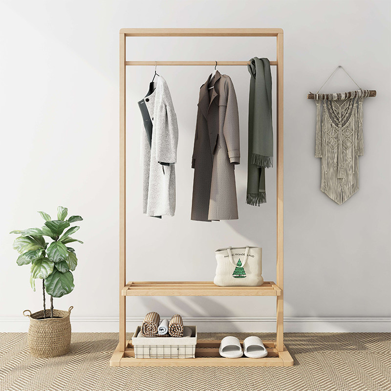 Walnut nordic hanging hanger Solid wood floor-to-ceiling bedroom coat rack living room simple modern new Chinese style homestay hanger