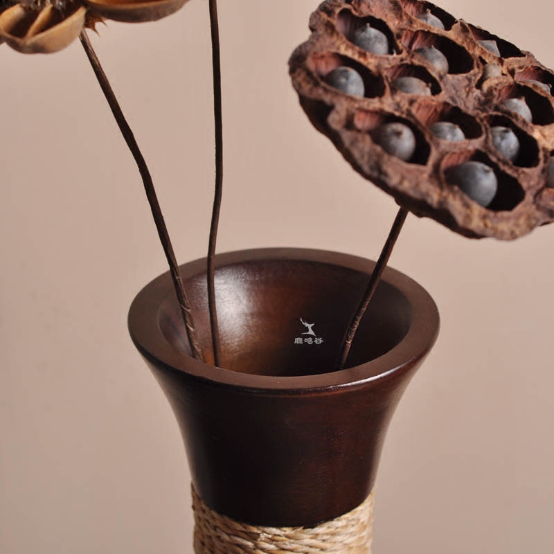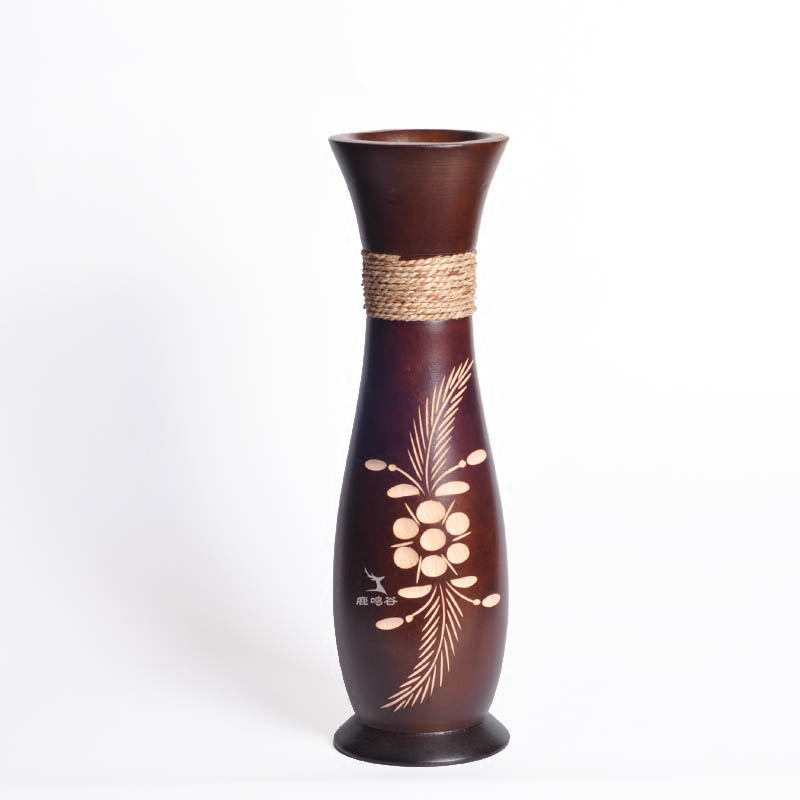 Thai Mango Wood Flower Bottle Solid Wood Engraving Flower Arrangement Bottle Wood Living Room Bedroom Home Decoration Style Cylindrical Vase