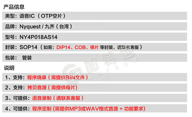 NY4P018AS14 Package SOP14 New Original Nyquest IX Voice IC OTP Full Series