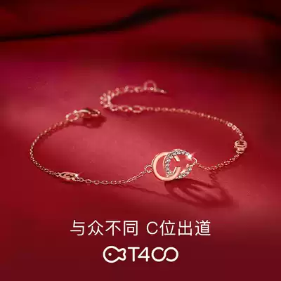 T400 double C letter hand female sterling silver ins niche design high sense rose gold birthday gift to girlfriend