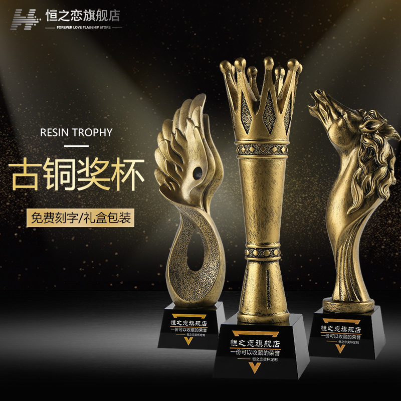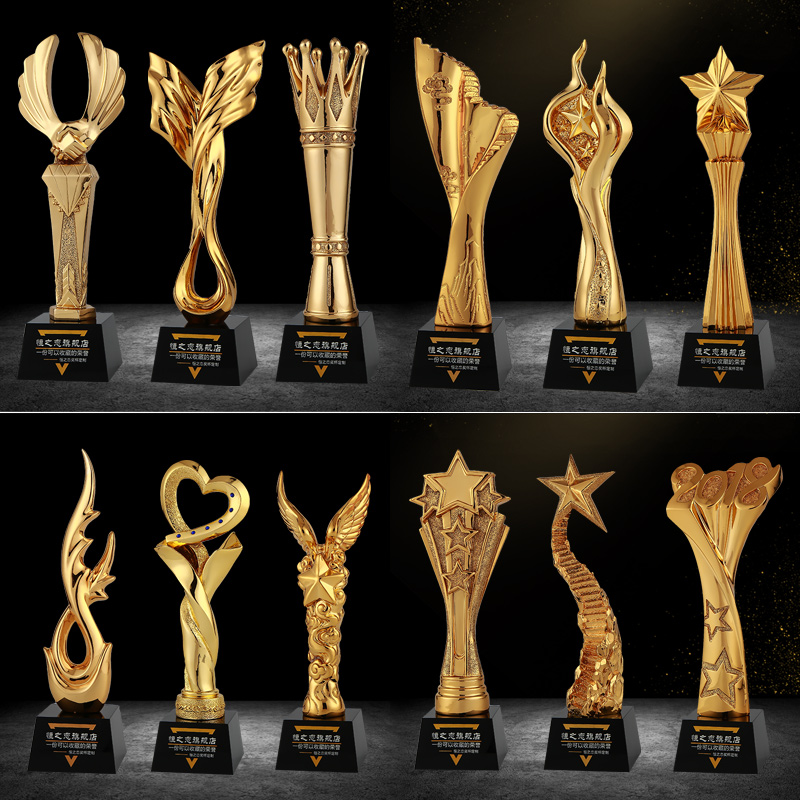 Gold-plated resin trophy Small golden Crystal trophy custom-made March 8 Women's Day award crown medal production