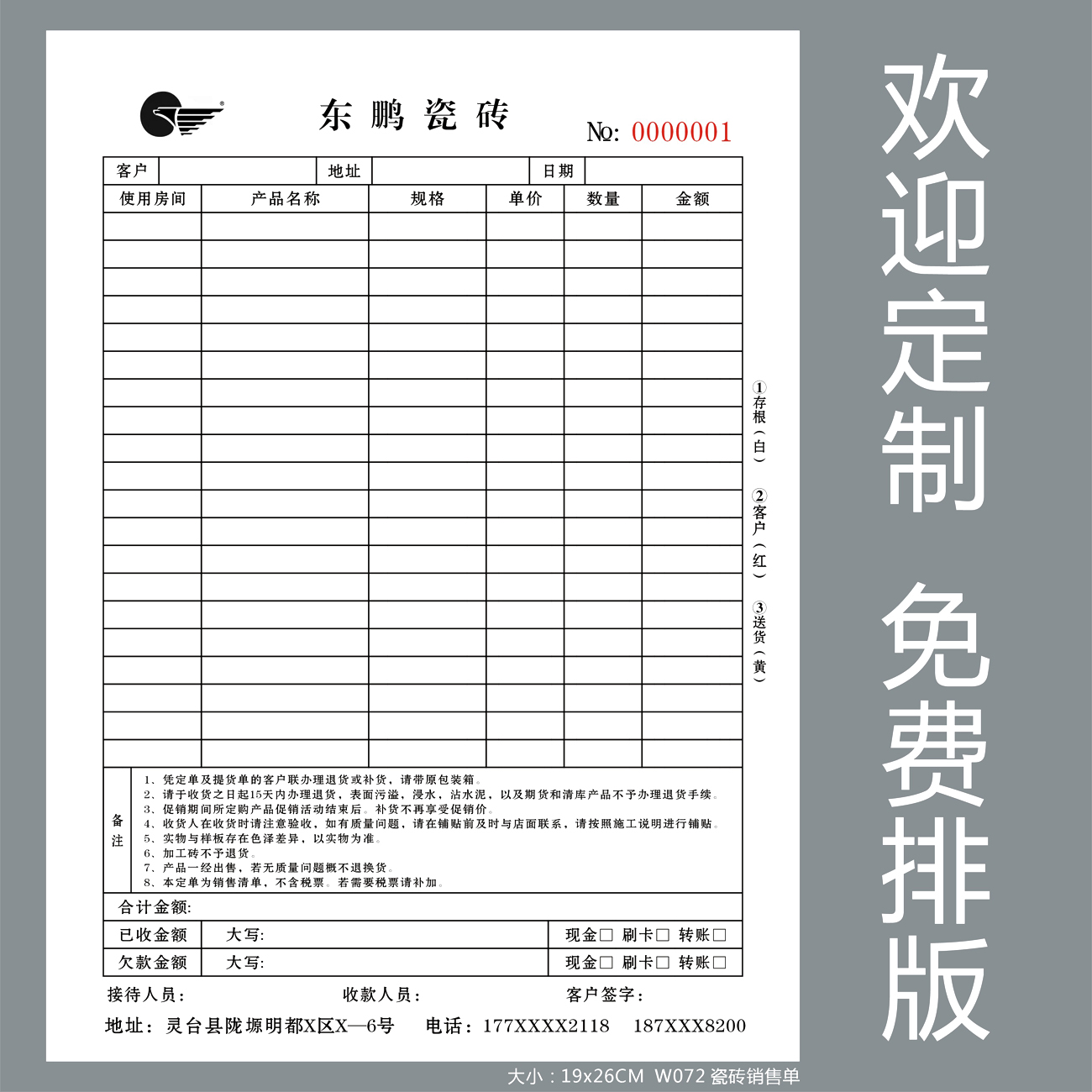 Tile Ordering Bill Delivery Slip Bill Sales Single Floor Stone Order Bill Receipt II Triple rewritten order