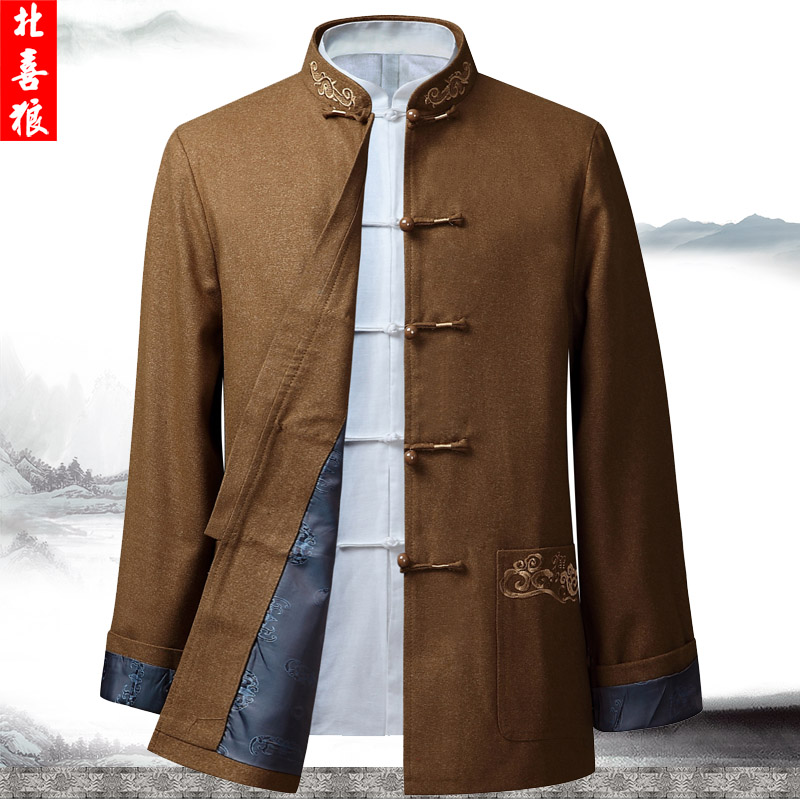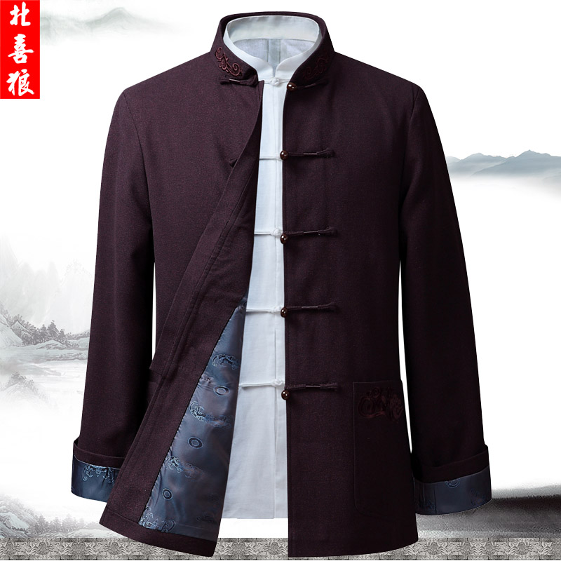 Spring Autumn Season Middle Aged elderly jacket Tangclothing male linen Thickened Cuz Chinese Pan Buttoned Hanfu Long Sleeve Jacket