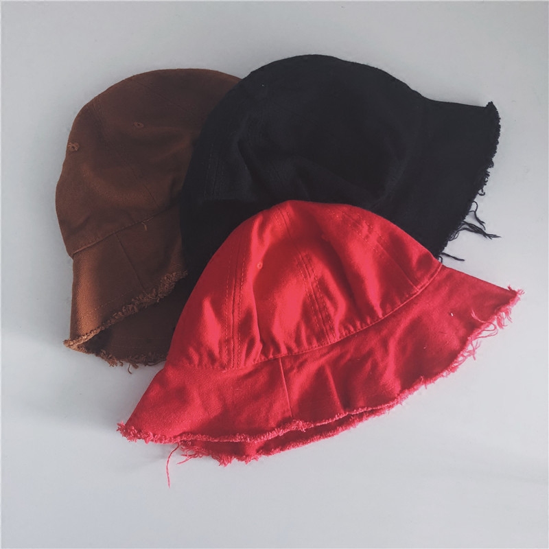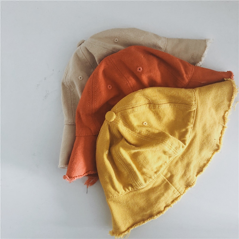 22 Spring and autumn new children's hat male and female baby cloth art wool side fisherman hat basin cap in children's pure color protective ear sunhat