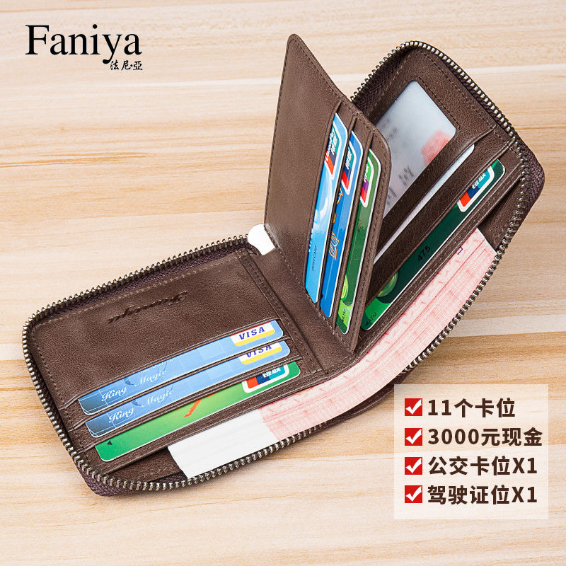 Men's wallet short leather 2022 new cowhide zipper driver's license card holder multifunctional men's wallet wallet