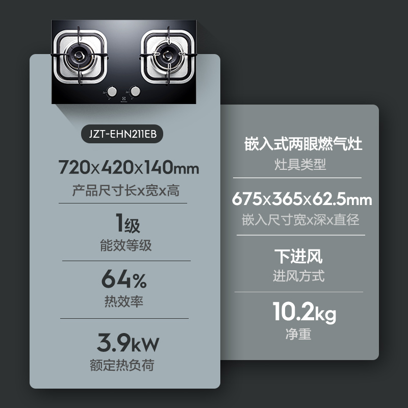 Eletrolux Electrolux EHN211EB black crystal tempered glass gas flush with eye cooker