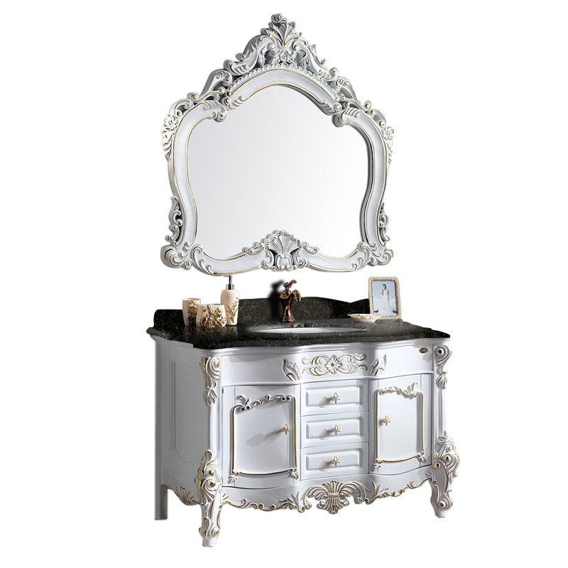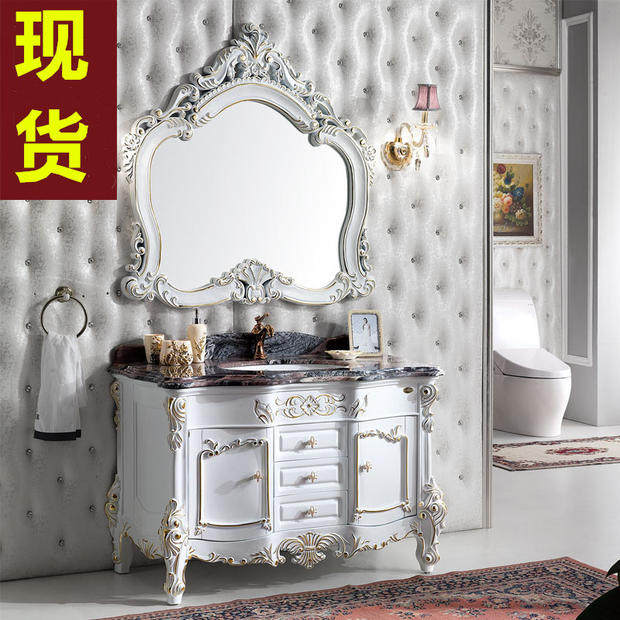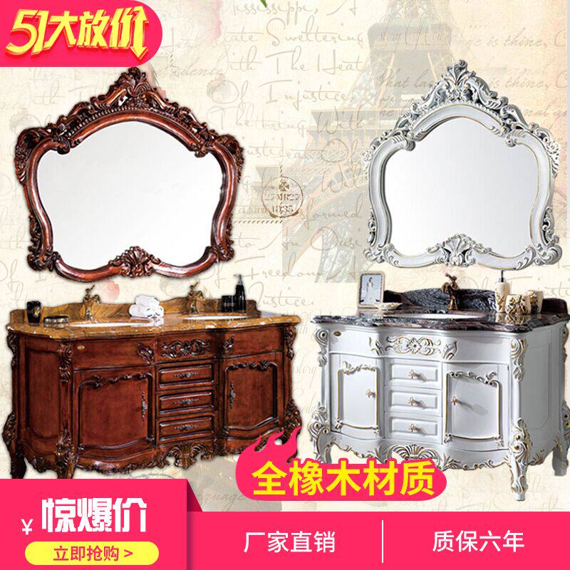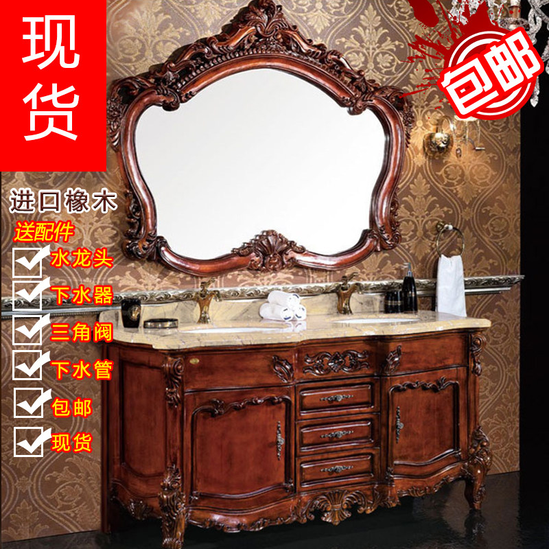 Eurostyle Oak Wood Bath Cabinet Imitation Ancient Carved Solid Wood Bath Cabinet Dressing Room Marble Floor-Style Hand Wash Table Basin Cabinet