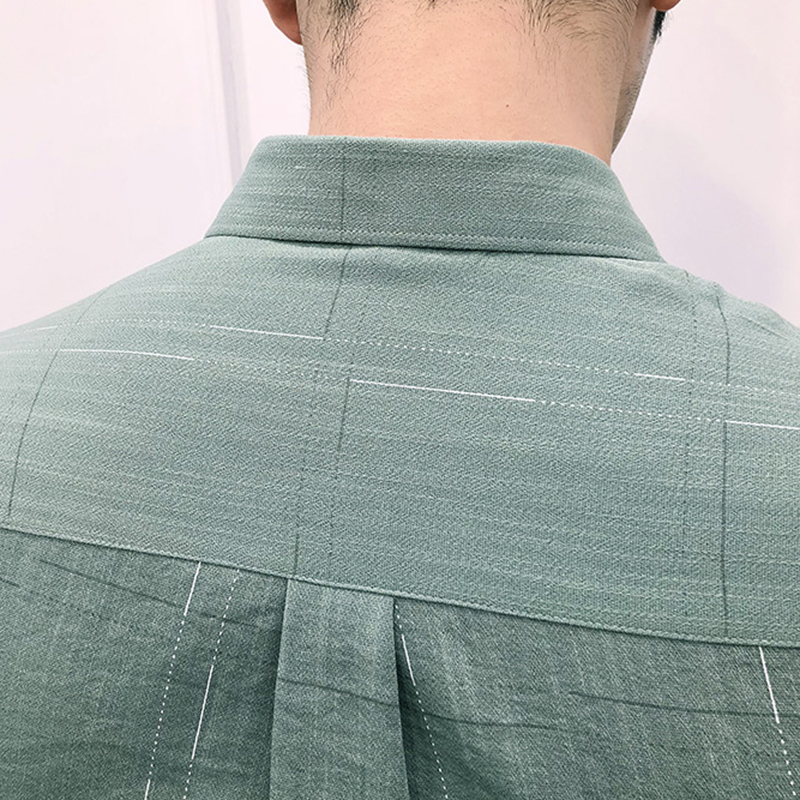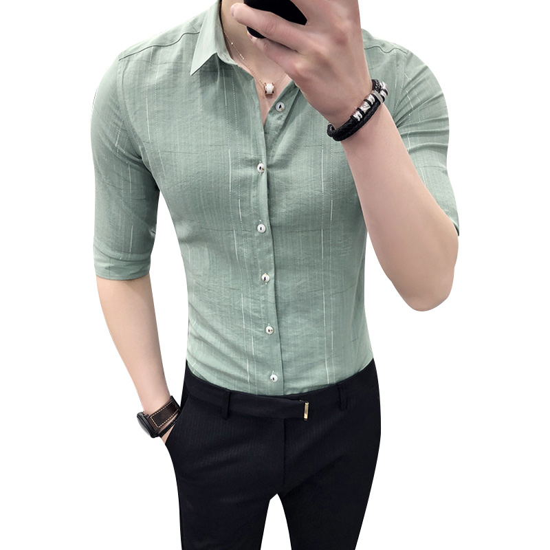 Summer shirt men's short sleeve slim hair stylist seven-point sleeve net red five-point middle sleeve men's shirt design sense niche