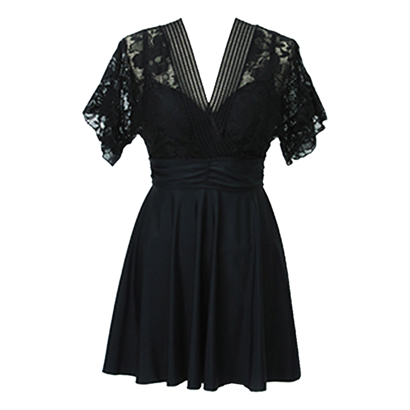 Skirt-style even for a swimsuit in a dress.