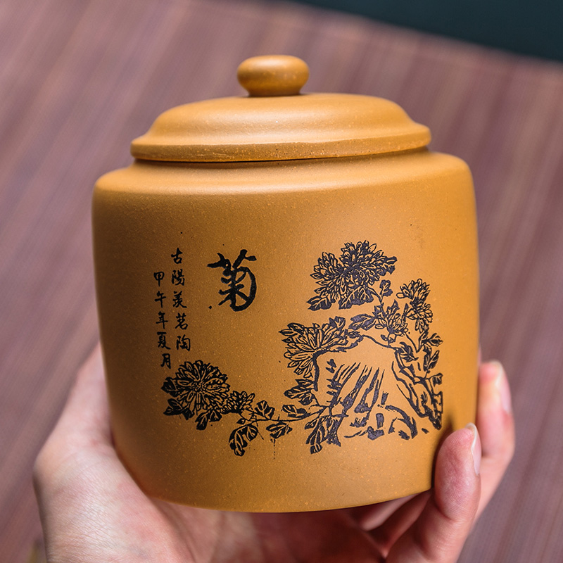 Yixing Zisha tea jar ceramic loose tea pot Pu'er tea tea drum copper buckle tea pot kung fu tea set