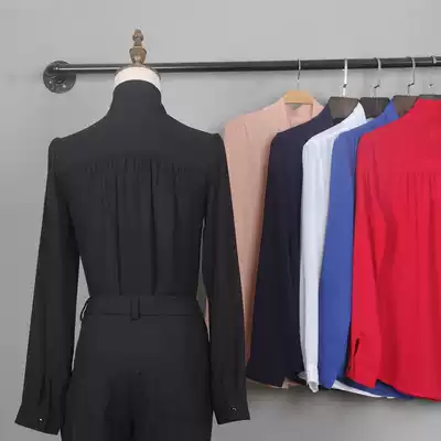 Black bow streamers lace-up long-sleeved chiffon shirt women's 2019 spring and summer new OL office overalls chic