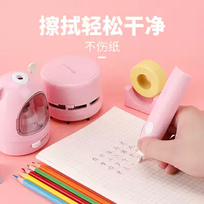 Pink battery three-piece set(electric pen sharpener rubber vacuum cleaner)Collection plus purchase gift bag Blue battery three-piece set(electric pen sharpener rubber vacuum cleaner)Collection plus purchase gift bag Black red