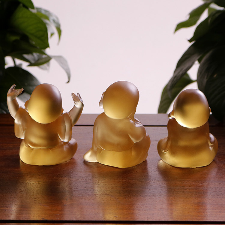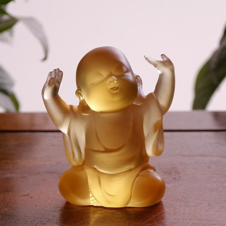 Ancient method Liuli Zen Xiaoshimi Cute Little Buddha Statue Office Decoration Creative Little Monk Home Furnishing Gifts
