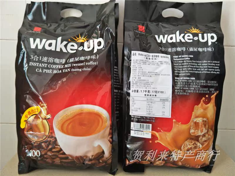 Vietnam import wakup wee coffee cat shit taste three-in-one instant coffee powder 1700g bags 100 strips * 17g