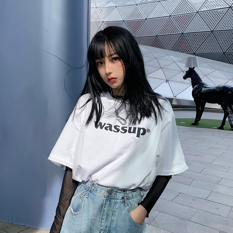WASSUP19SS summer basic 5-color logoT men's crew neck printing solid color half sleeve cotton inner jacket short sleeve