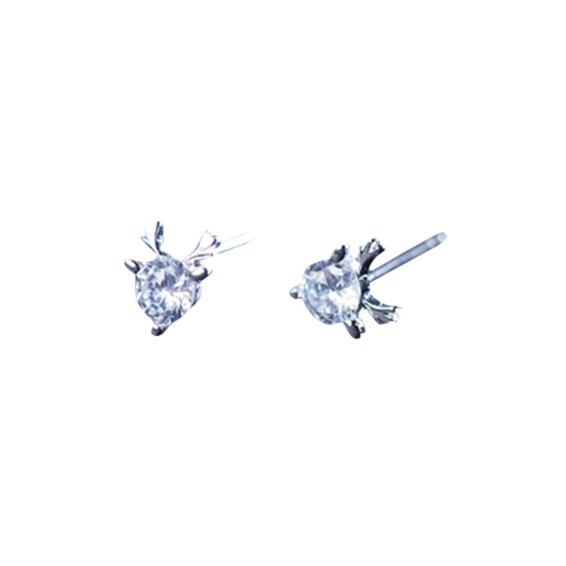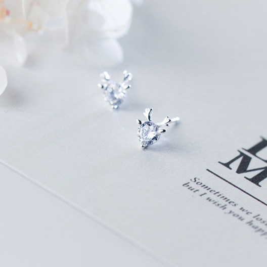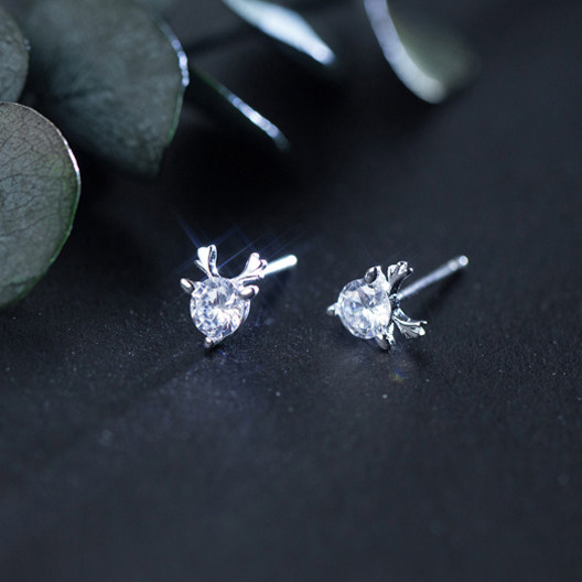 Koi king small antler single diamond sterling silver earrings earrings female niche ins simple and exquisite girlfriends summer and autumn cute