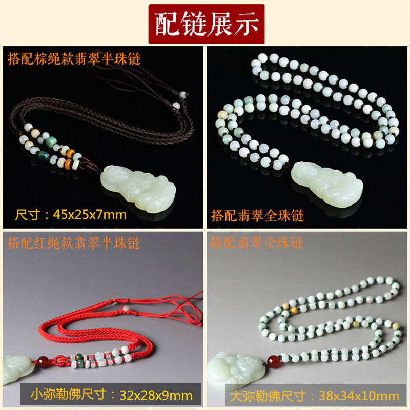 Jadeite Full Bead Chain with Guanyin Pendant Brown String Jadeite Half Bead Chain with Guanyin Pendant Red String Jadeite Half Bead Chain with Small Maitreya Pendant Jadeite Full Bead Chain with Large Maitreya Pendant