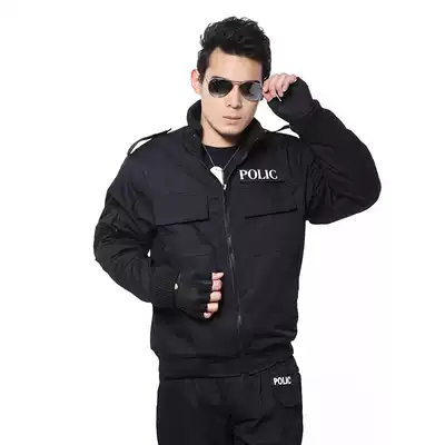 American casual men's black flying cotton jacket fleece warm jacket cotton suit men's combat training suit jacket
