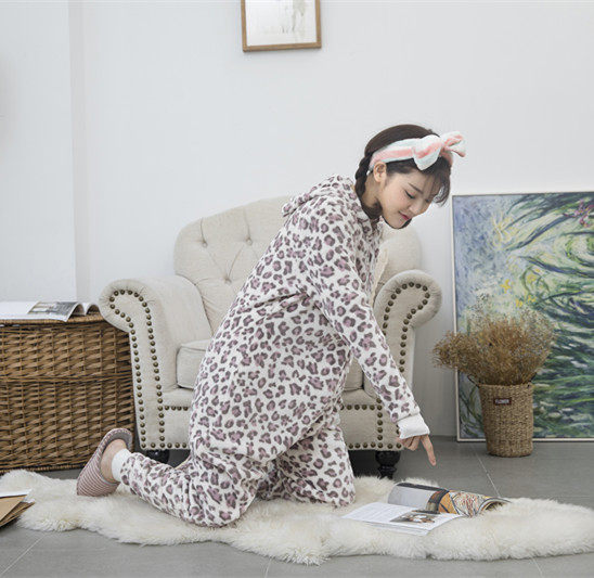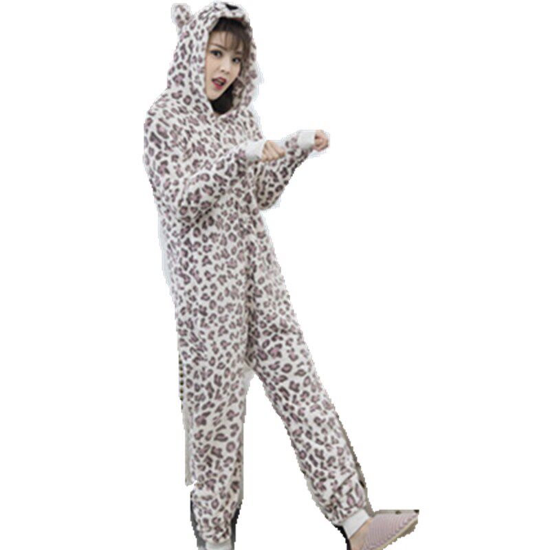 Low-cost promotion cartoon one-piece pajamas for men and women adults thickened warm flannel coral velvet cute home clothes